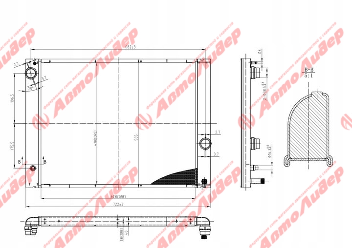 Радиатор охлаждения /AUTOLEADER для BMW 5-Series 2003-2010 E60 2.0 2.5 3.0 5.0; 7-Series 2005- E65 4.0; 6-Series E63 /без крышки; BW-5SER-E60-1232 17117639021; BW5SERE601232 17117507972 BW00082