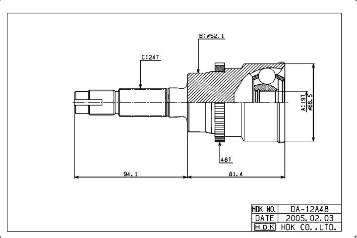 ШРУС наружный /передний правый /левый HDK для Daihatsu Terios 1997- Cami 1999- ABS; 19*52*24; DA-012A48; (CO-7510A TG-2812 TG2812Z48) 4342087402 4341087406 0910012A48