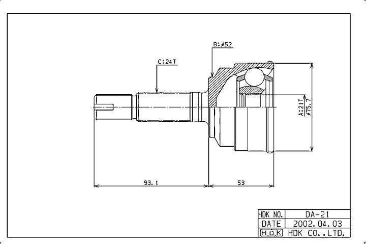 Шрусы наружный /передний правый /левый HDK для Daihatsu Charade 1993-2000; 21*52*24; DA-021; 4341087742 DH21A48