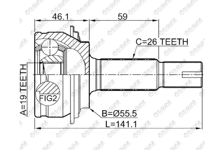 ШРУС наружный /правый /левый /TI-GUAR для Toyota Vitz 2005-2008 Belta Yaris 2005-2007; 19*55.6*26; TG-95107; (TO-107) 4341052180 4342052180 4347059795
